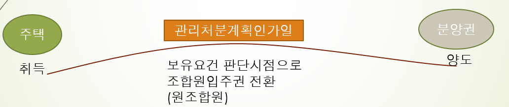- 조합원입주권 취득일로부터 3년이내 종전주택을 양도할것