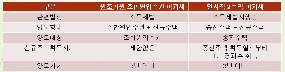 「원 조합원 입주권 과 일시적 2주택 비과세 비교하기 」