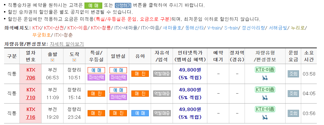 참고: 현재 코레일 홈페이지에서 해당 노선의 예약이 가능합니다.